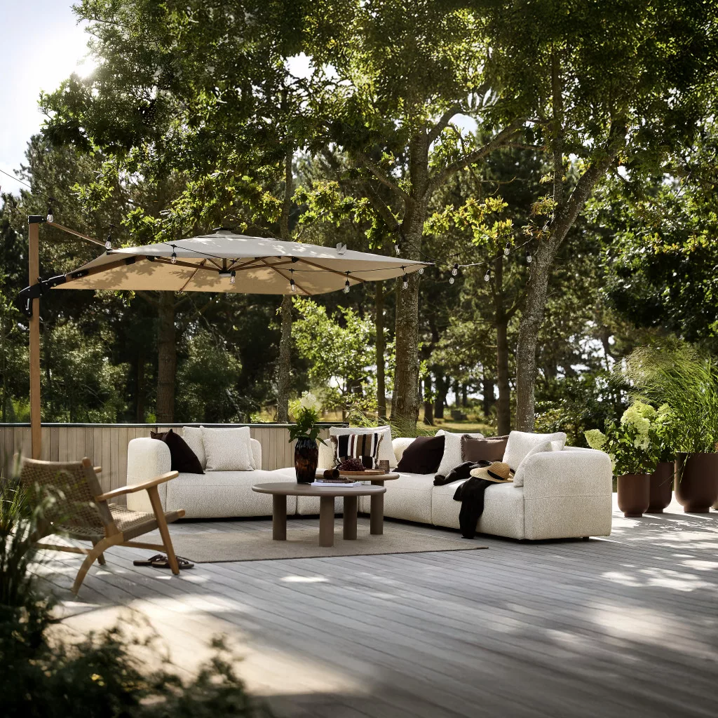 A Faro kerti sarokkanapé igazi pihenőoázist teremt a kertben vagy a teraszon. Lekerekített formái, sand árnyalatú kárpitja és kényelmes, gyorsan száradó habbal töltött párnái nyugodt, lounge hangulatot hoznak a szabadba. Stabil alumínium váza könnyed megjelenést biztosít, miközben ideális alapot nyújt a mindennapi kikapcsolódáshoz és a közös pillanatokhoz.