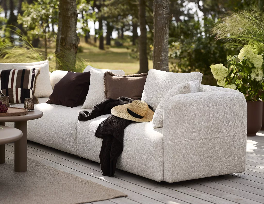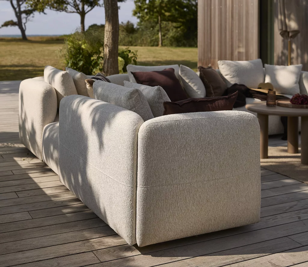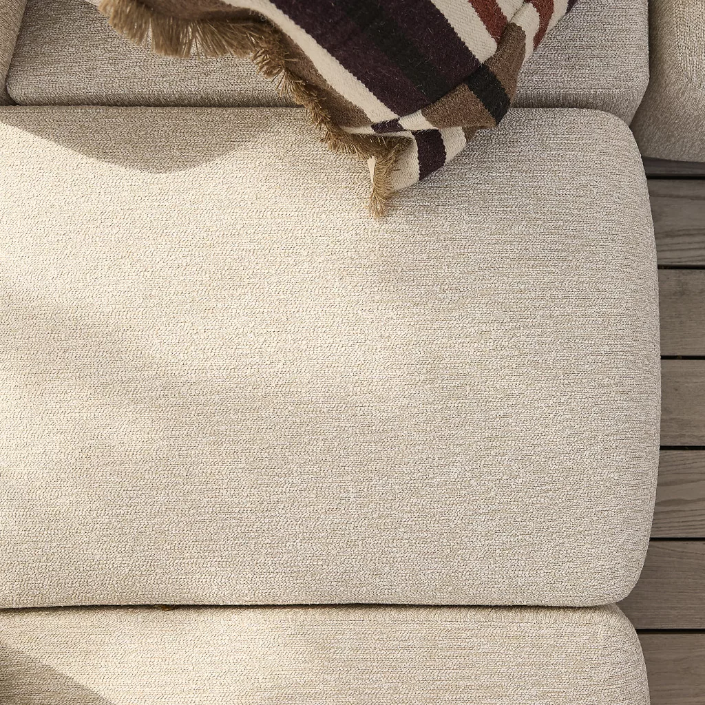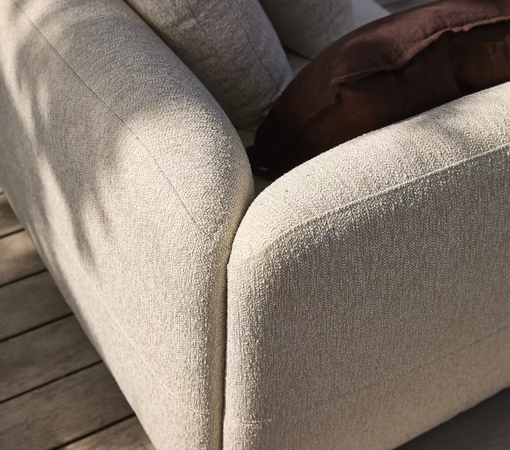 A kárpit olefin és poliészter keverékéből készült, amely kellemes tapintású, mégis jól bírja a kültéri használatot. A párnák gyorsan száradó habbal töltöttek, így egy rövid nyári zápor után is hamar újra élvezhető a komfort. A lekerekített formák és a sand színű árnyalat harmonikusan simulnak bele a természetes környezetbe, nyugodt és kiegyensúlyozott összhatást teremtve.