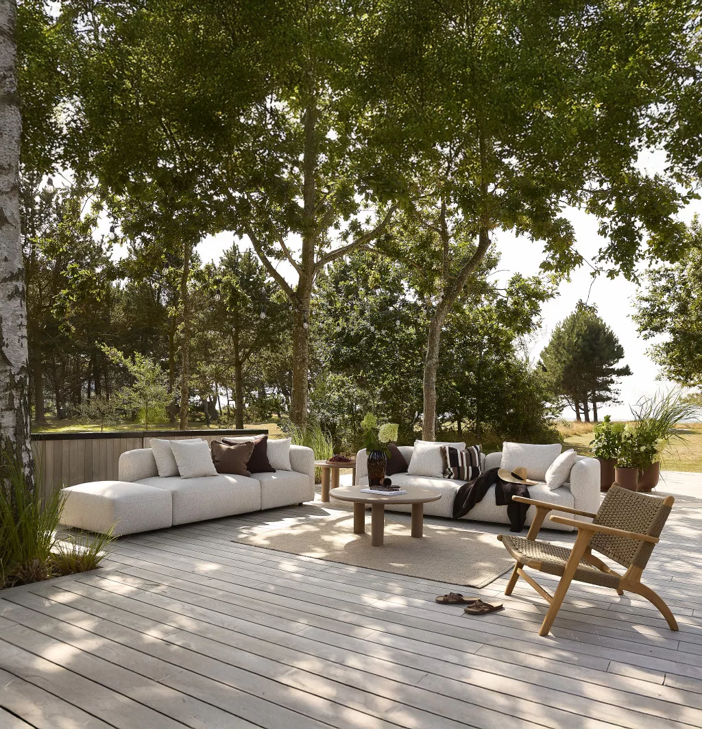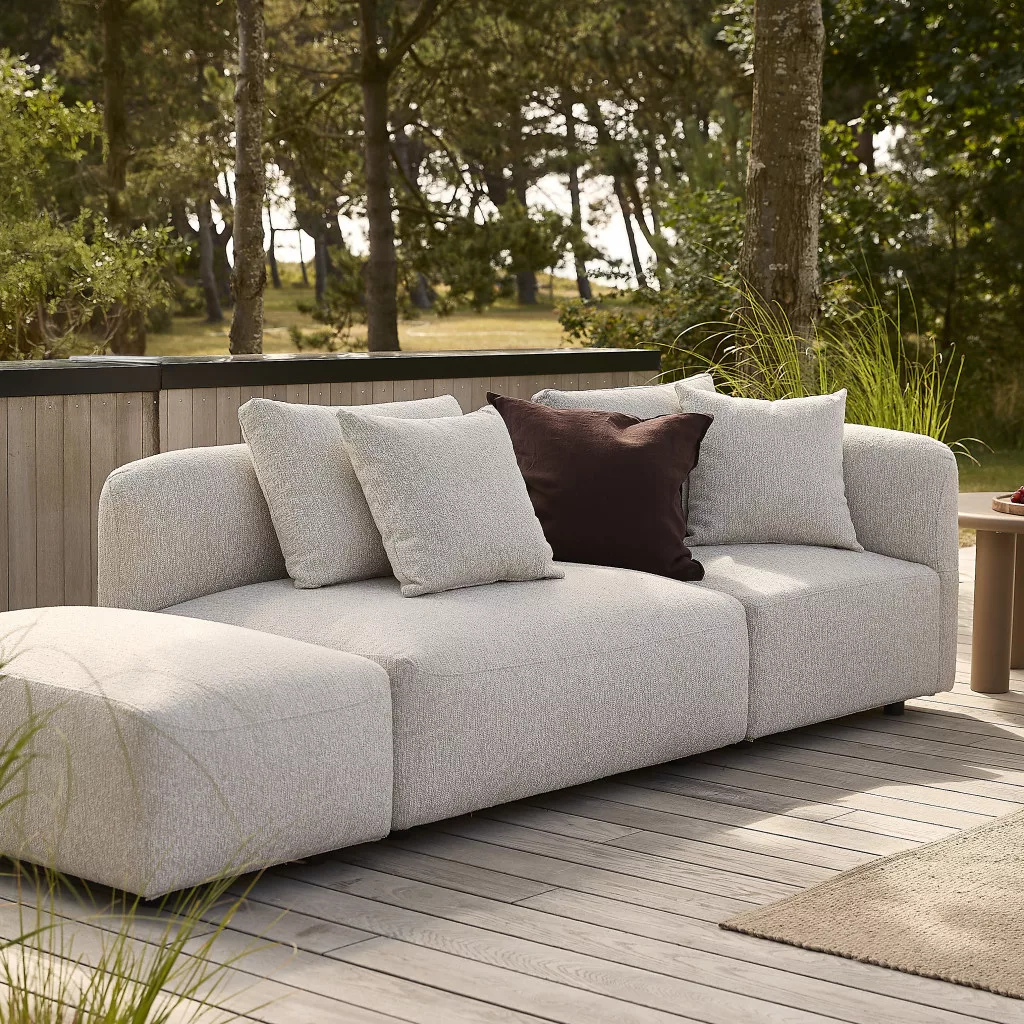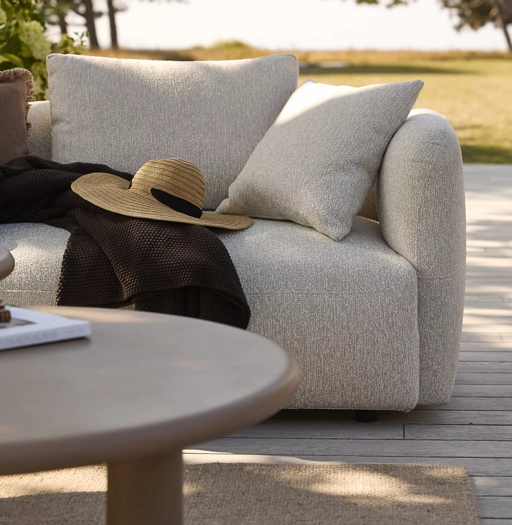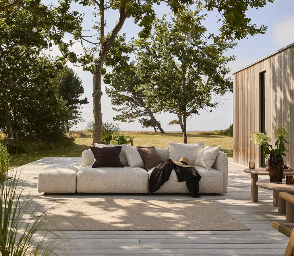 Az alumínium váz könnyű, mégis stabil szerkezetet biztosít, így a kanapé és az ottomán egyszerre időtálló és könnyen mozgatható. A Faro egész évben kint maradhat a szabadban, a párnák védelmével pedig hosszú távon is megőrizhető a kényelme és esztétikája.