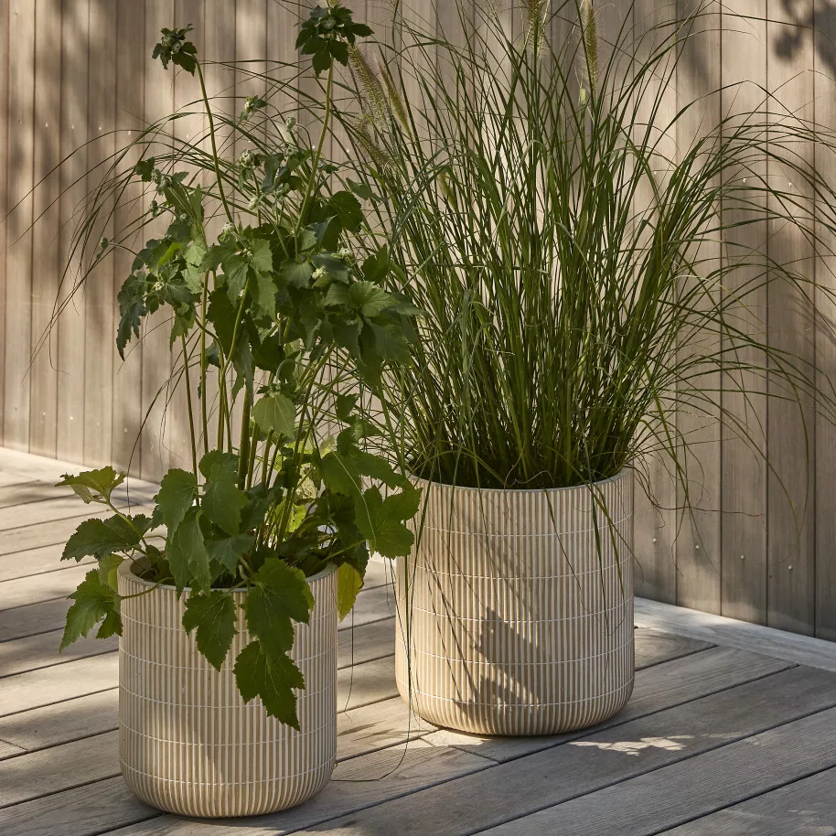 A Haukefjell kaspószett finom, mégis karakteres részletként varázsol meleg és hívogató hangulatot a kertbe, a teraszra vagy a ház mellé. A két kaspó bézs színe és egyszerű, minimalista formája természetesen illeszkedik a környezetbe, miközben harmonikus egyensúlyt teremt a funkcionalitás és az esztétikum között. A fibercement anyag tartós, ellenáll a mindennapi használatnak, ugyanakkor könnyen kombinálható más kerti bútorokkal és növényekkel, így gyorsan a kert vagy a terasz meghatározó részévé válik. A kaspók ideálisak arra, hogy kiemeljék személyes stílusát, legyen szó egy nyugodt, egyedül töltött pillanatról vagy baráti összejövetelről a szabadban. Egyszerű, letisztult nordikus stílusuk minden kültéri térben jól mutat, és hosszú távon is elegáns, rendezett látványt biztosít.