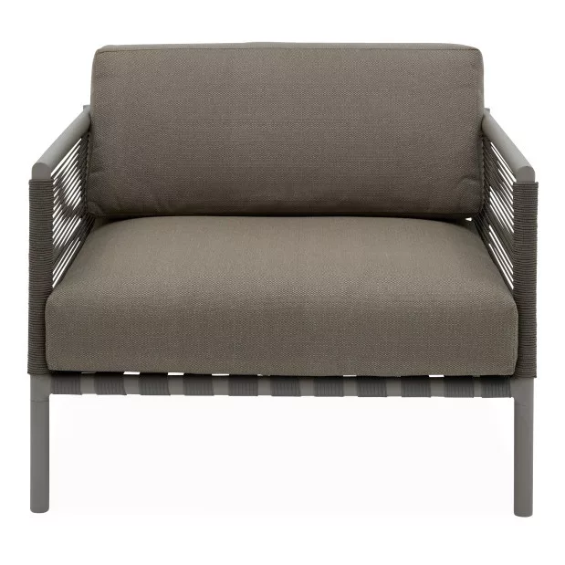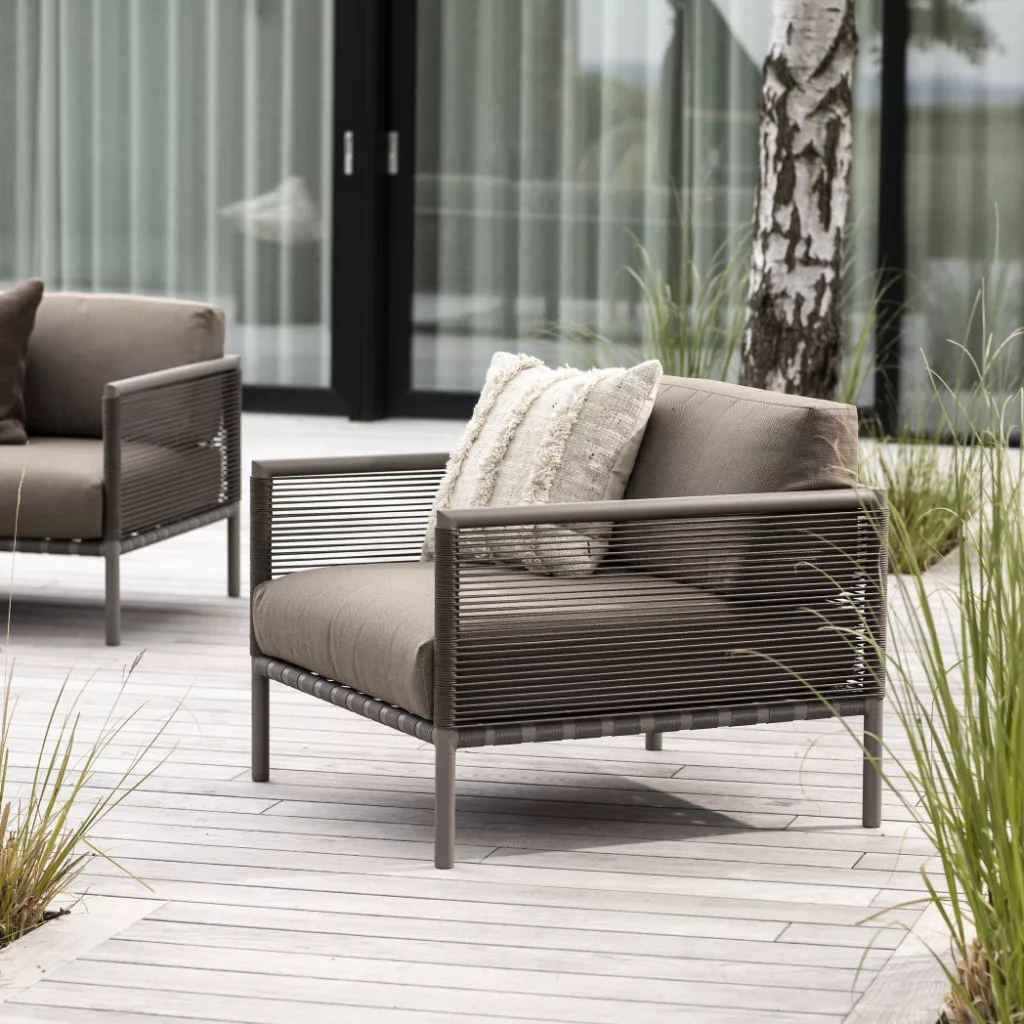 A Horizon lounge-fotel a mindennapokban vágyott nyugalom és kikapcsolódás pillanatait hozza el. Elegáns, letisztult kialakításával és komfortos párnáival a terasz vagy a kert természetes központi eleme lesz, ahol könnyedén elmerülhetsz a pihenésben. A fotel ülőfelülete stropflet anyagból készült, amely kellemes, mégis támogató érzést nyújt, míg a sötét homokszínű alumínium váza modern és stabil alapot biztosít. Az olefin párnák puhaságuk és tartósságuk révén hosszú távon megőrzik kényelmüket, így a fotel akár egy hosszú nap végén is a tökéletes pihenőhely marad. A Horizon lounge-fotel a nyári reggeli kávézás, a délutáni olvasás vagy a kellemes esti beszélgetések ideális helyszíne, és gyorsan a kedvenc pihenőhelyeddé válik a szabadban.