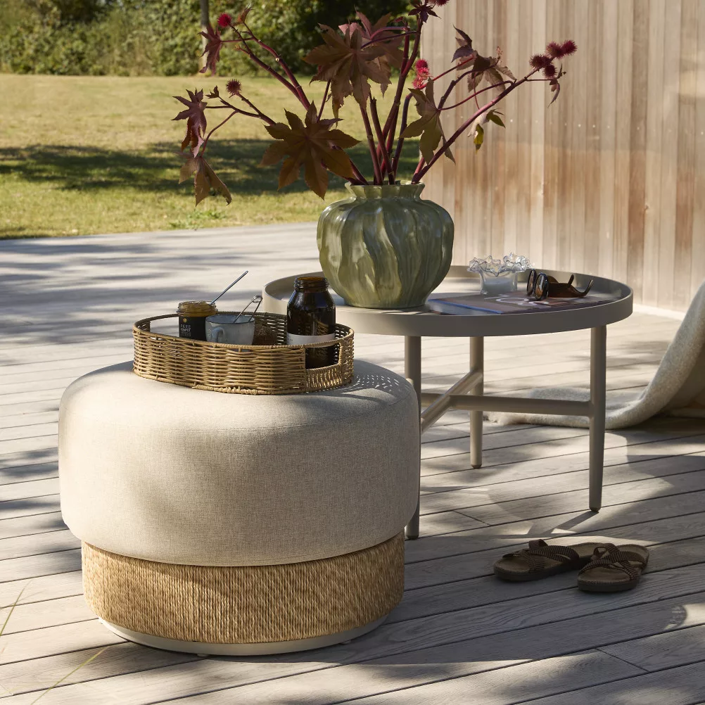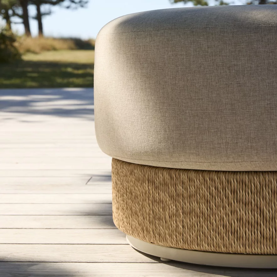 A Kos kerti puff egy sokoldalú kültéri bútor, amely a nyugalom és a pihenés oázisává varázsolja a kerted vagy teraszod. Puha, lekerekített formája és természetes színvilága révén tökéletes hely a lábak felpolcolására, egy rövid sziesztára, vagy extra ülőhely biztosítására barátok és család számára.