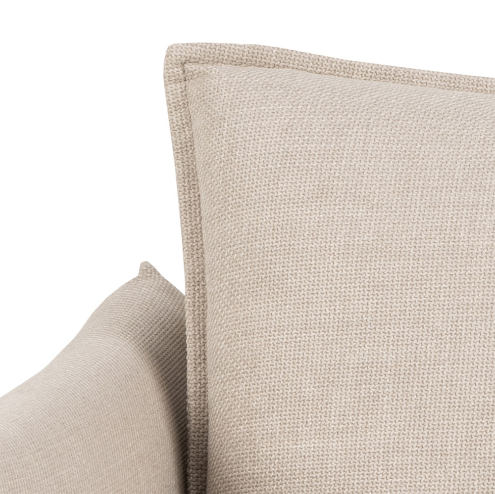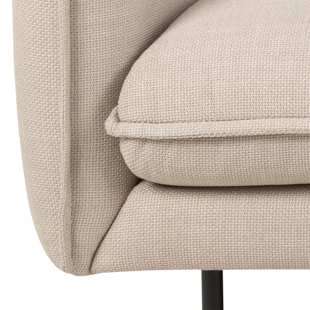 A Manhattan 2,5 személyes kanapé a minimalista design és a részletek eleganciáját ötvözi. Bézs színű kárpitja két tónusú hatással gazdagítja a textúrát és a vizuális mélységet, míg a kerekített kartámaszok és a kétoldalas háttámlapárnák kényelmes, hívogató ülőfelületet biztosítanak. A finom francia varrások elegáns megjelenést adnak, a fekete porfestett fém lábak pedig modern kontrasztot és stabilitást kölcsönöznek. FSC™ tanúsítvánnyal készült, így nemcsak stílusos, de fenntartható választás is a nappaliba.
