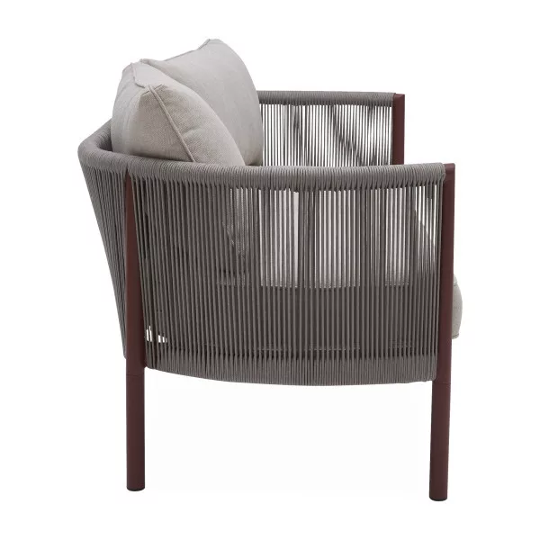A vörösesbarna porfestett alumínium váz stabilitást és időtálló eleganciát biztosít, miközben könnyed, harmonikus megjelenést kölcsönöz a kültéri térnek. A Nerissa kerti kanapé ideális mind kis, mind nagy teraszokra, könnyen kombinálható más kültéri bútorokkal, és természetes része lesz a kerted hangulatának.