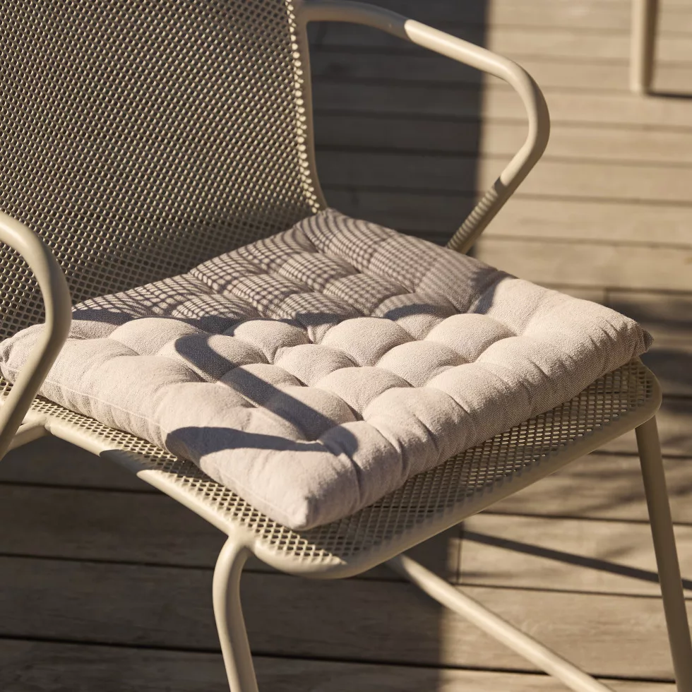 A Ravnstad kerti székpárna a kerted apró, de fontos részlete, amely fokozza a kültéri pihenés élményét. Puha, homokszínű pamut borítása azonnal meghív a nyugodt, relaxáló pillanatokhoz, akár egy csendes reggeli kávézásról a teraszon, akár baráti társaságban töltött délutánokról van szó. A párna praktikus mérete és formája miatt könnyen elhelyezhető bármelyik kerti széken, és természetes módon illeszkedik a kert vagy terasz összes stílusához.