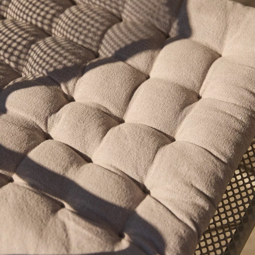 A Ravnstad kerti székpárna puha, homokszínű pamut borításával kényelmet nyújt minden kültéri üléshez. Könnyen elhelyezhető bármelyik kerti széken, harmonikusan illeszkedik a kert vagy terasz stílusához, és gyorsan a kültéri pihenés kedvenc kiegészítőjévé válik.