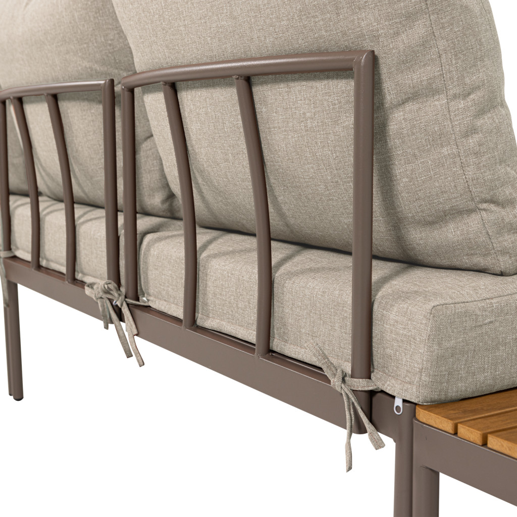 A Zaro 3 személyes kerti bútor szett asztallal bézs színben stílusos és kényelmes kültéri megoldás. A moduláris kialakítás lehetővé teszi a szett tetszőleges elrendezését, míg a fémváz és az olefin kárpit biztosítja a tartósságot és a komfortot a kertben, teraszon vagy balkonon.