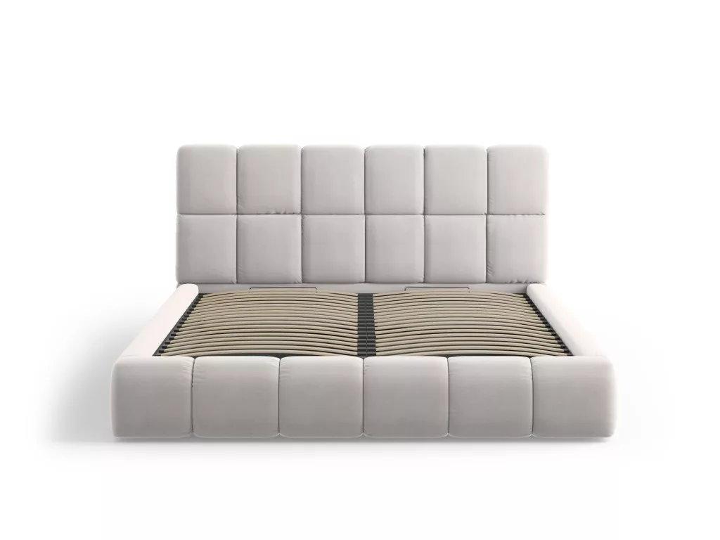 The Bellis double bed is the ideal choice for those who want unique, modern, and stylish furniture for their bedroom. The bed's rounded, trendy silhouette, combined with soft headboard and frame padding, ensures maximum comfort during every rest. The numerous striking seams result in a stable and flexible filling that contributes to a restful night's sleep. Its gently rounded cube shapes exude elegance, while the bold design adds character to the space. The spacious storage space under the bed offers a practical solution for organizing bedding and textiles, making Bellis not only a stylish but also an extremely practical double bed. The bed is sold without a mattress, bedding, or decoration, allowing you to arrange your bedroom according to your own taste.