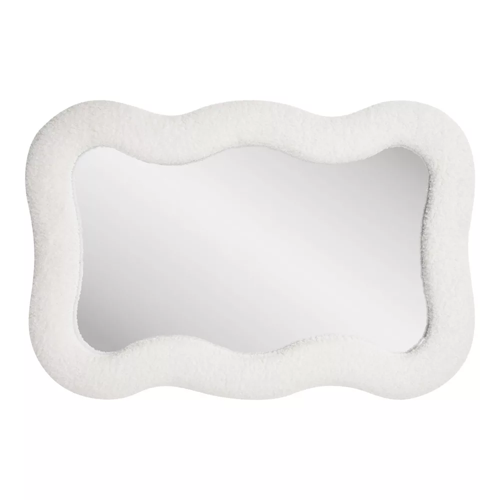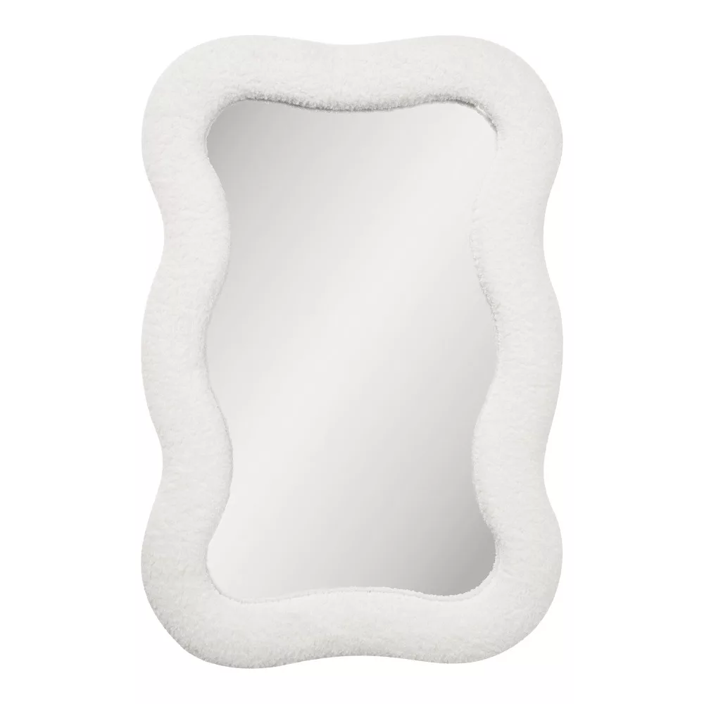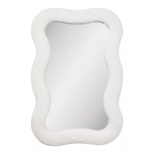 The Bosaro mirror (80x54 cm) is a modern, unique accessory that brings a touch of softness and playfulness to your home with its white, plush frame (teddy material). Thanks to its stylish and soft appearance, it is a perfect choice for the bedroom or living room, where it visually expands the space while creating a Scandinavian atmosphere. The mirror arrives already assembled, so it can be placed on the wall immediately.