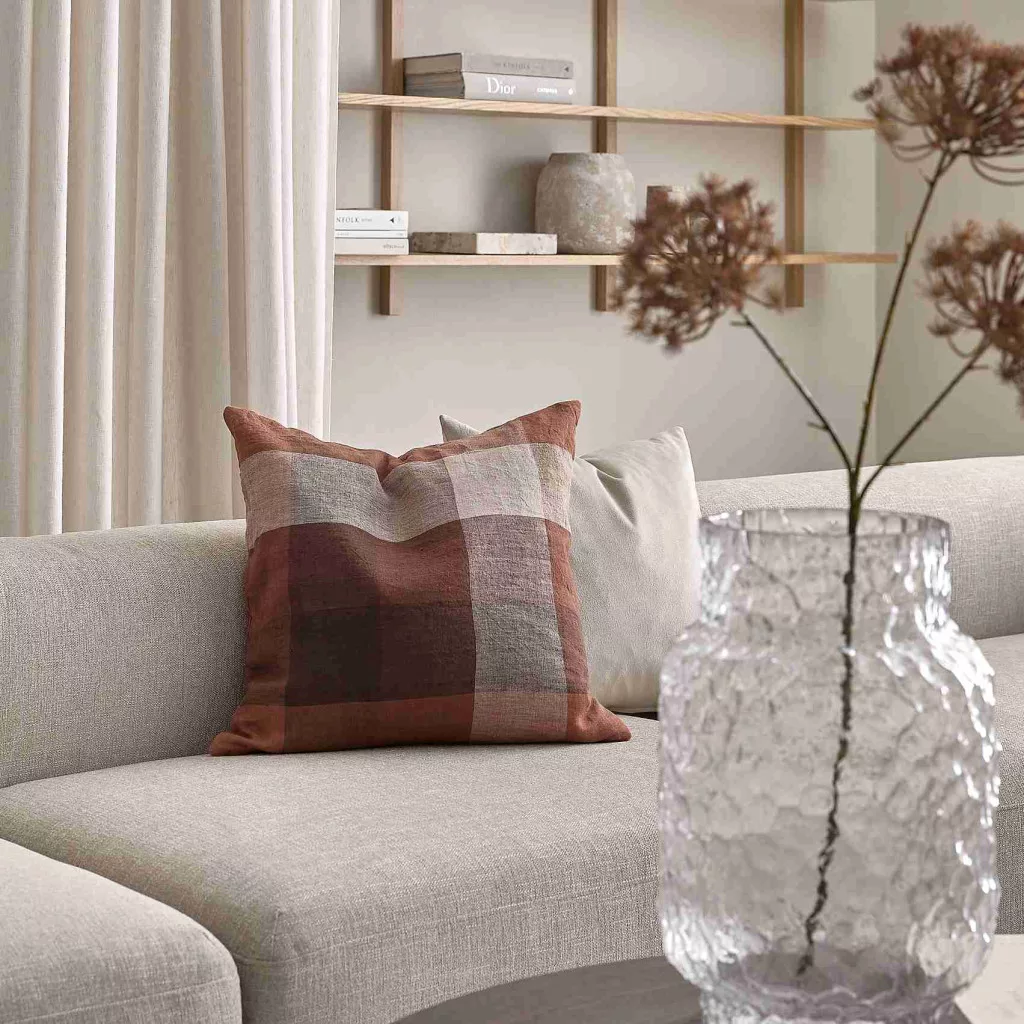 The CARNO decorative pillow comes in brown, red-brown, cognac and white, made from a cotton and linen blend. Its checkered pattern brings stylish character and color to your sofa, armchair or bed.