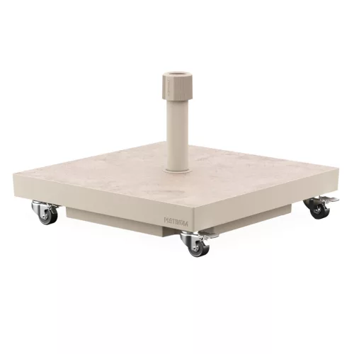 The Ceramica parasol base is the basis for outdoor relaxation and safe parasol use. Its dark grey, modern colour creates a natural harmony in your garden or terrace, while also serving as a stylish accessory. The combination of solid plastic and ceramic guarantees that the base remains stable even in strong winds, while the easy-to-move wheels and braking mechanism allow you to always position the parasol in the best position.