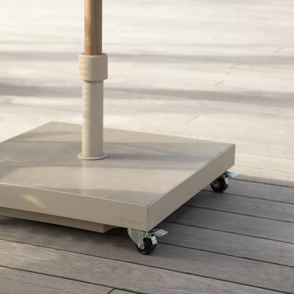 The Ceramica outdoor parasol base provides a stable base for your patio or garden parasol. Its dark grey, elegant colour blends harmoniously into the natural surroundings. With practical wheels, brakes and a solid plastic-ceramic construction, the Ceramica is always stable, even in windy weather.