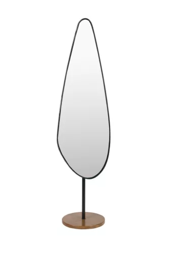 The Zuiver Dropz mirror is an elegant, black metal framed standing mirror that will add a modern and minimalist style to your home. Measuring 135 cm high, 40 cm wide and 35 cm deep, the mirror is an ideal choice for hallways, bedrooms or living rooms where a standout design is needed. The combination of the black metal frame and the dark brown lacquered wooden base creates a sophisticated look.