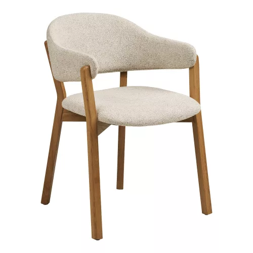 The Dunkirk dining chair, with its elegant oak frame and sand-colored textile seat, combines the simplicity of Scandinavian design with comfort. Ergonomic armrests and premium materials ensure long-term usability. An ideal choice for dining rooms, living rooms or home offices.