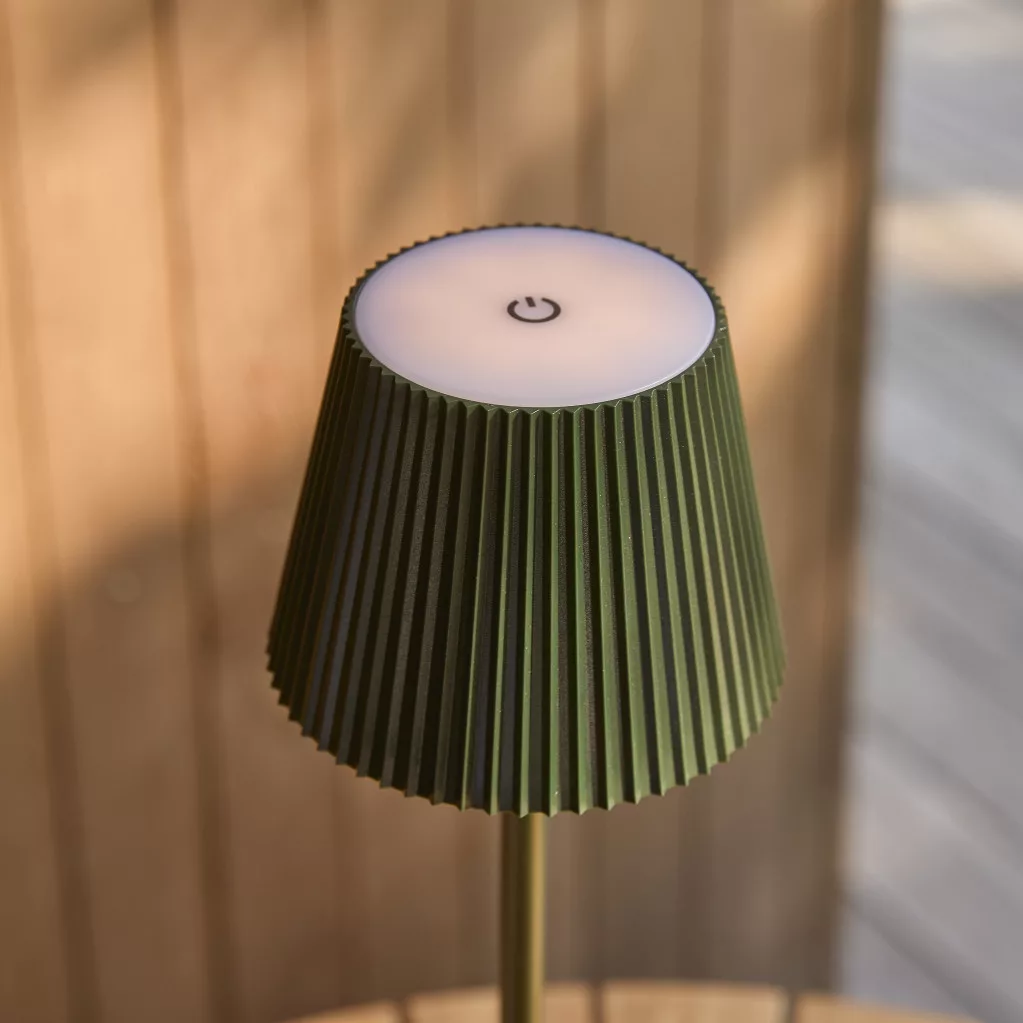 The lamp emits a warm, friendly light that is ideal for relaxing, cozy evenings or lighting up your everyday tasks. The built-in LED provides 5-8 hours of light on a single charge, while its rainproof design means it can also be used outdoors. The dark green color gives the lamp an elegance while harmoniously blending into any interior.