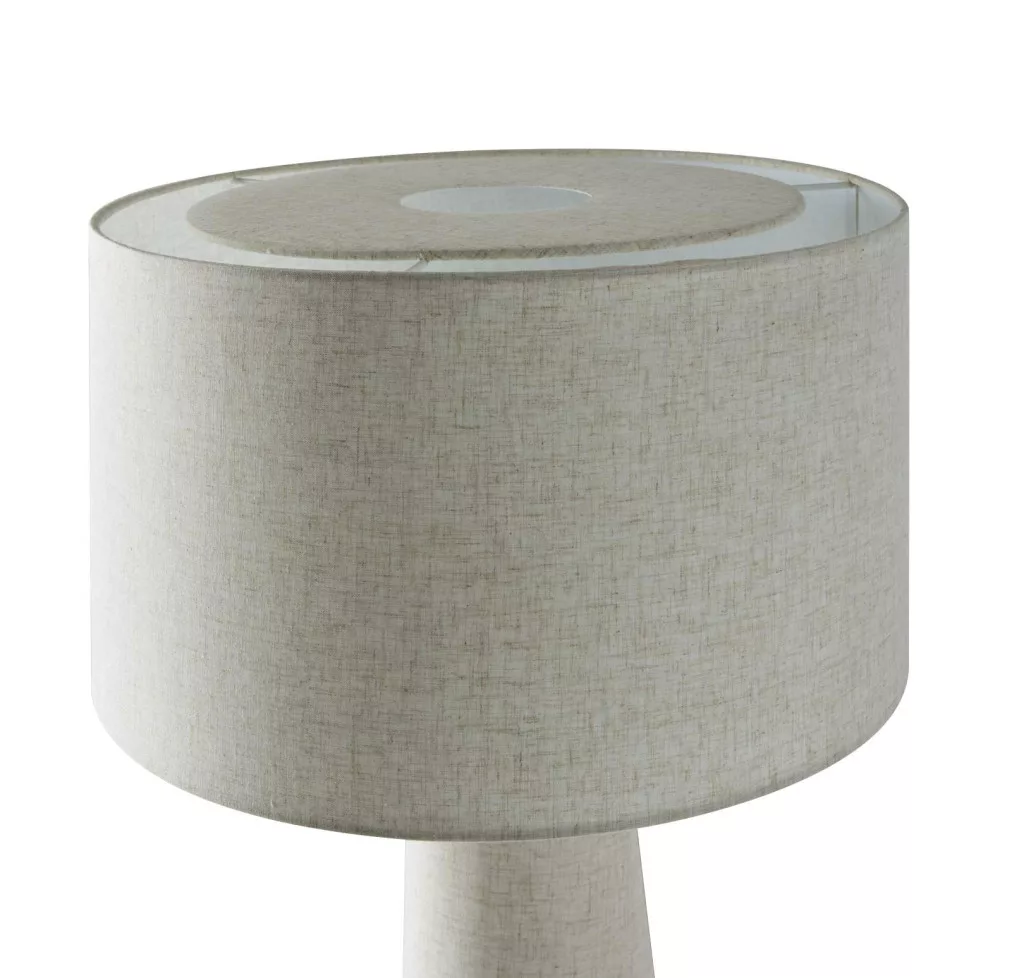 A búra és a talp egyaránt természetes textilbevonatot kapott, ami letisztult, harmonikus megjelenést biztosít. A fekete textilkábel modern kontrasztot teremt, így a lámpa tökéletesen illeszkedik skandináv, minimalista vagy bohém enteriőrökbe is.
