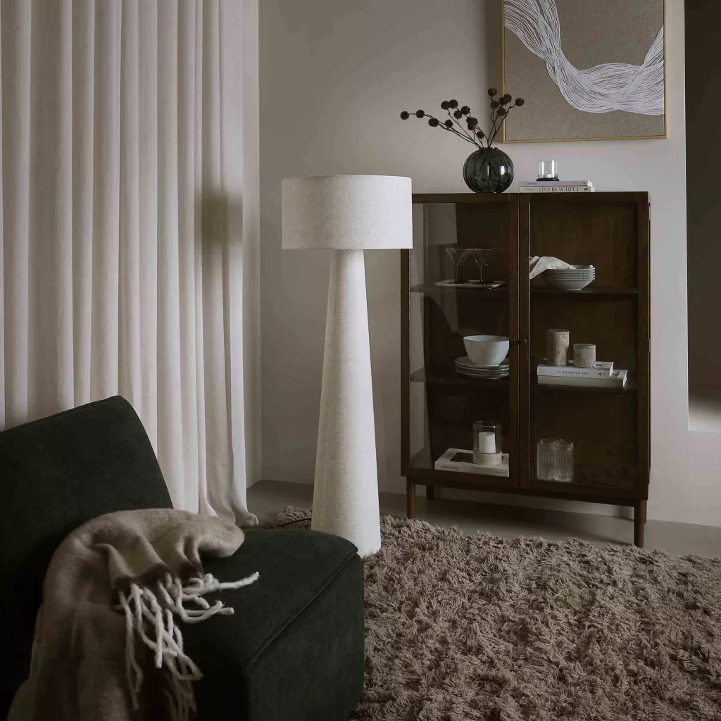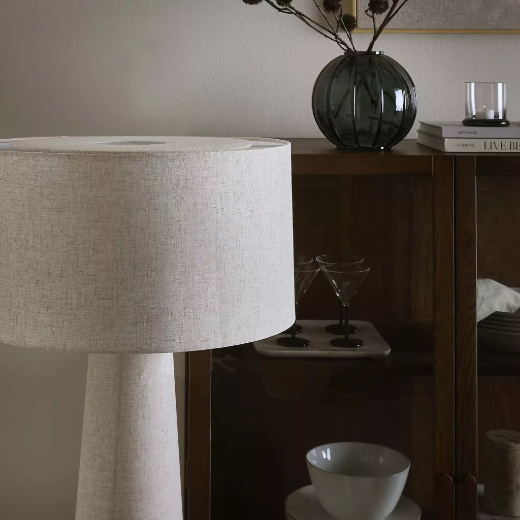 Ha természetes hatású, nyugalmat árasztó fényforrást keresel, a textilbúrás állólámpa remek választás. A lámpa magas, karcsú kialakítása kiemeli a tér magasságát, miközben meleg és lágy fényt áraszt, amely ideális hangulatot teremt.
