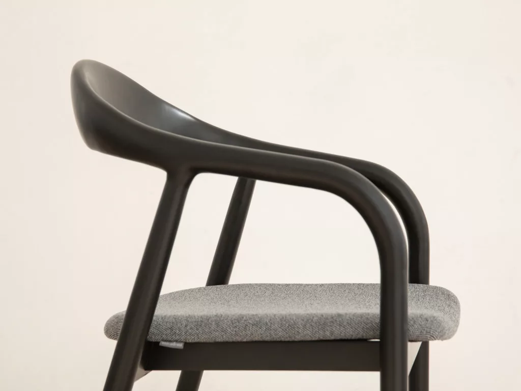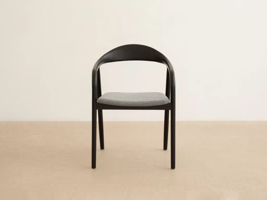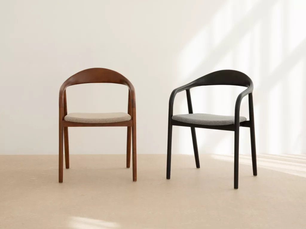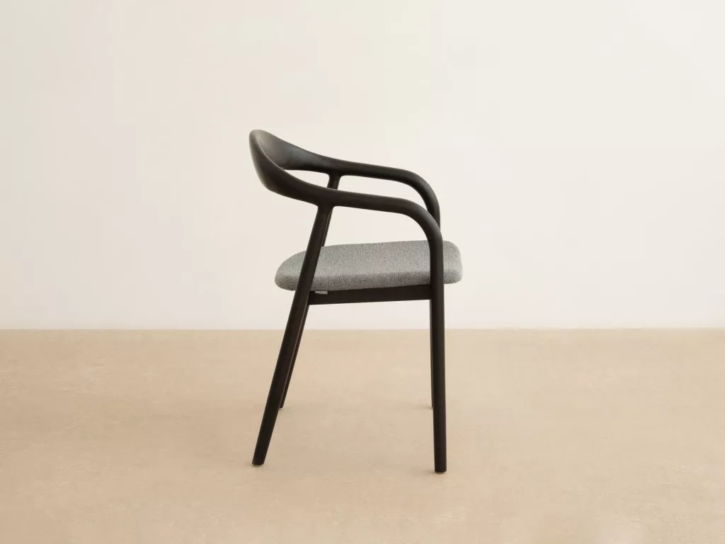 The Illa dining chair combines functionality and elegance, bringing timeless style to any dining room. Its sculptural, curved armrests not only add sophistication, but also ensure comfortable relaxation during meals. The solid beech frame is available in natural, walnut, or black finishes, making it easy to match with different tables and interiors. The soft upholstered seat creates a cozy, inviting feel, while the solid wood construction ensures long-lasting durability. The Illa dining chair is a modern, elegant, and timeless choice that perfectly combines style and everyday comfort.