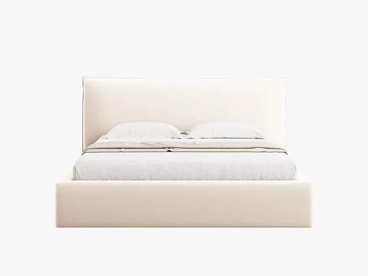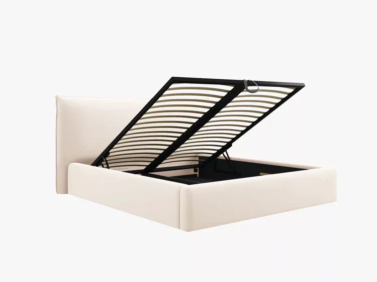 The Kaelle bed is the perfect combination of comfort and modern design. Its softly padded headboard is ideal for reading or relaxing, while the gas-lift, front-opening, upholstered bedding compartment offers practical storage for bedding and textiles. Its minimalist style fits into any contemporary bedroom. The mattress is sold separately.