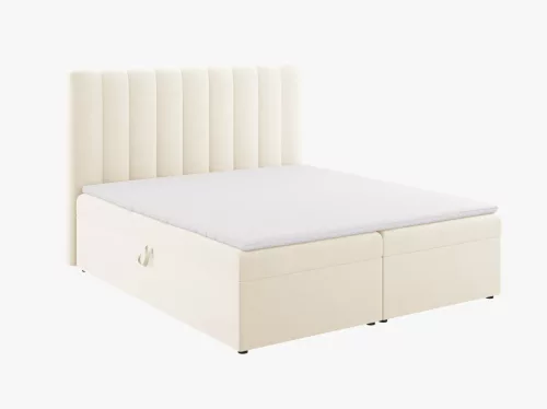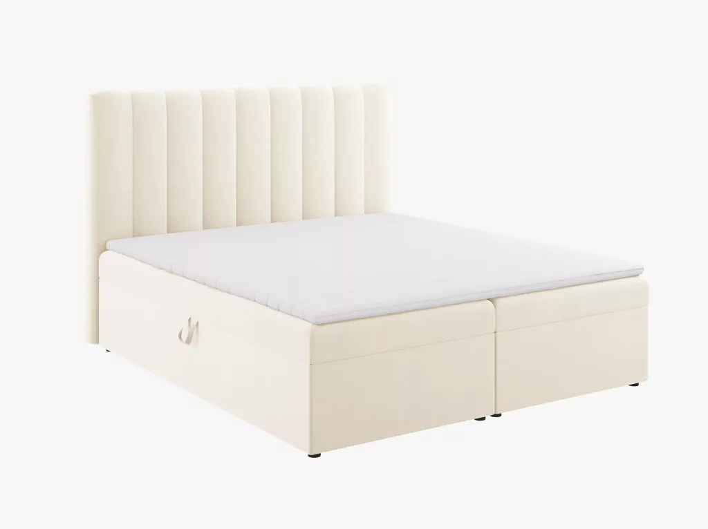 The Kelp box spring bed is the centerpiece of the bedroom, combining modern design with classic elegance. Its clean lines and neutral colors fit into any interior, while the 14 cm thick spring mattress provides optimal body support for restful and regenerative sleep. The soft, foam-padded backrest provides extra comfort, whether you're reading or relaxing. The spacious storage space under the bed is ideal for organizing bedding and textiles and is easily accessible from both sides. The 4 cm thick topper and 25 kg/m³ density foam guarantee long-term comfort, while the solid construction of the Kelp box spring bed retains its original shape and elegance for years, transforming your bedroom into a true oasis of relaxation.