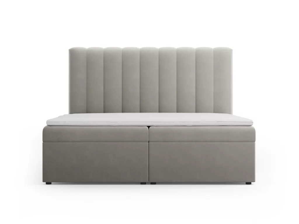 The Kelp box spring bed combines modern elegance and premium comfort, making it a standout piece in your bedroom. Its clean lines and neutral colors easily fit into any interior, while its details lend a sophisticated style to the space. The durable spring mattress provides optimal body support for restful sleep, while the soft backrest padded with 25 kg/m³ density foam ensures comfortable reading and relaxation. The 4 cm thick topper offers additional comfort for every night. The spacious storage space under the bed allows for practical storage of bedding and other textiles, easily accessible from both sides. The Kelp box spring bed is made of high-quality materials, and its solid construction retains its original shape and comfort for many years, providing a luxurious experience every night.