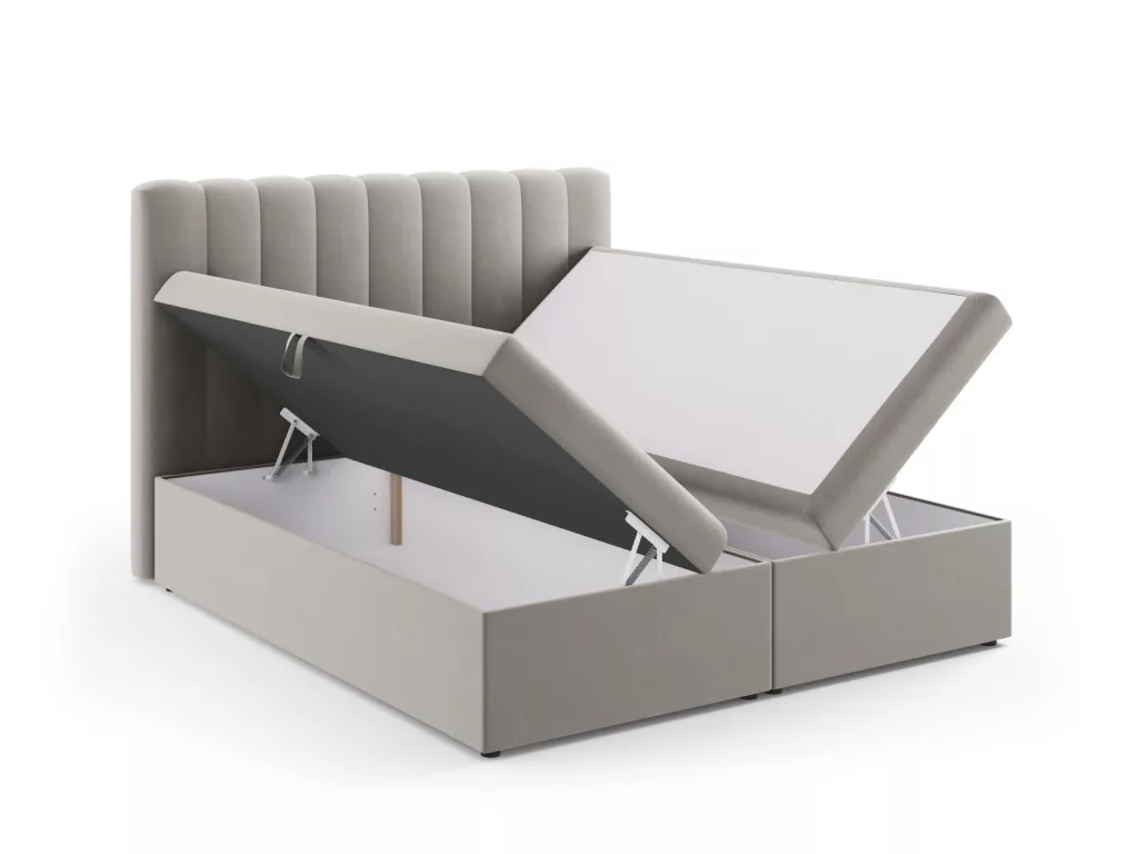 The Kelp box spring bed is the perfect combination of luxury and comfort. The spring mattress and soft, foam-padded backrest ensure a restful night's sleep, while the spacious storage space under the bed offers a practical solution for bedding and textiles.