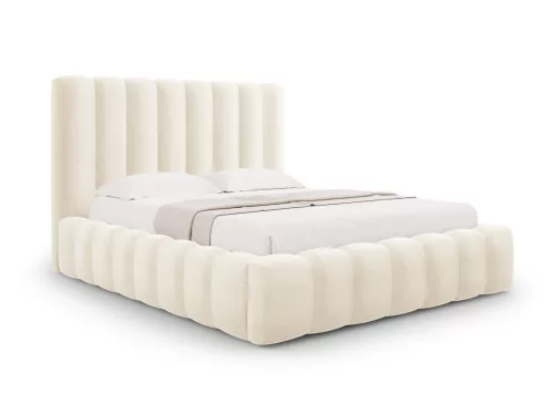 The Kelp upholstered double bed offers a stylish and functional solution for any bedroom. The striking, wave-shaped headboard is covered with soft foam and pleasant-to-touch upholstery, providing comfortable support for reading or relaxing. The finely crafted vertical seams lend it an elegant look, while the soft bedding compartment provides practical storage for blankets and pillows. The gas lift, front-opening bedding compartment is easily accessible, and the metal-framed, flexible slatted base guarantees a stable and comfortable sleeping surface. The Kelp bed is available in several standard sizes to fit any of our mattresses, which can be purchased separately. This model is ideal for those who love distinctive, decorative and comfortable furniture in their bedroom.