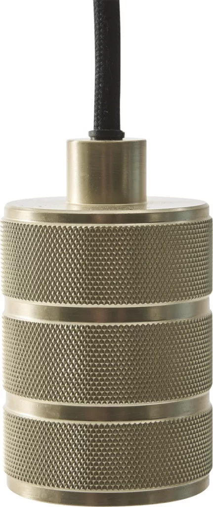 Pendant lamp with a gold-colored metal base and black textile cable - a stylish choice for warm-light, classic interiors.