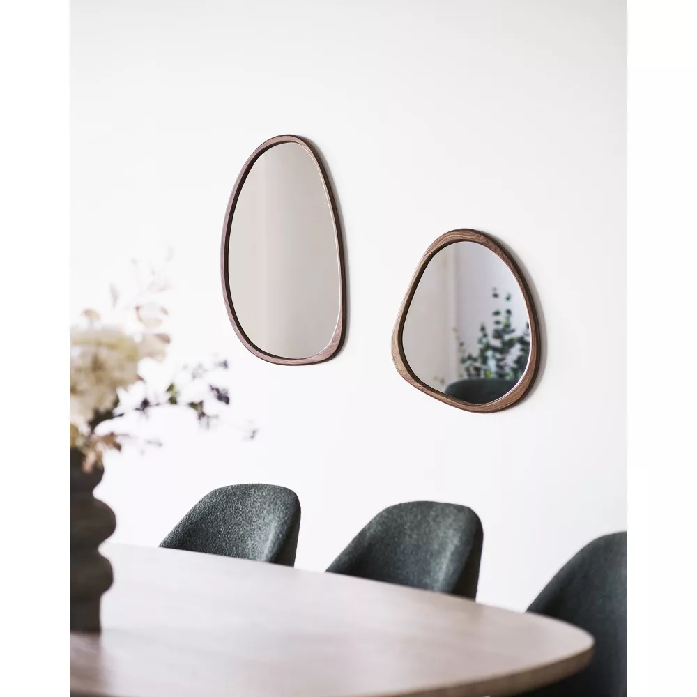 The Luxon wall mirror (38.5x64.5 cm) is a unique, organically shaped accessory that visually expands the space. The wood-effect frame creates a modern and warm atmosphere, perfectly fitting into Scandinavian-style and minimalist interiors. The mirror comes pre-assembled, so it can be placed on the wall immediately.