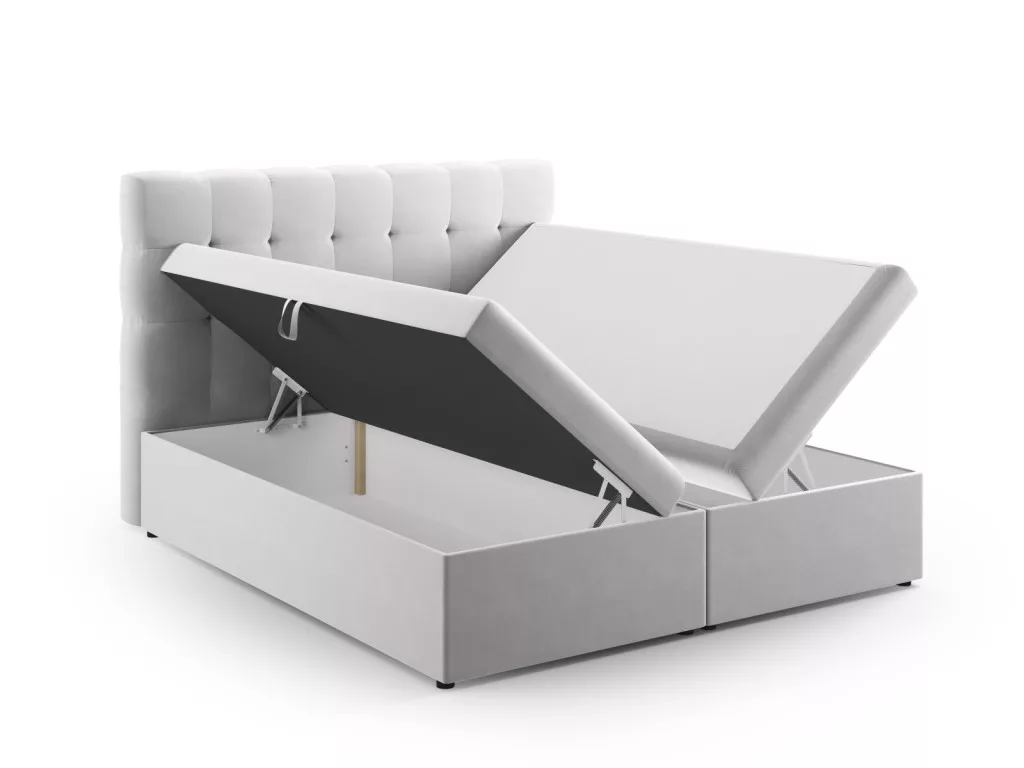 The Mamaia box spring bed is the ultimate in bedroom comfort. Its soft, decorative headboard and storage space that opens on both sides are the perfect combination of style and functionality, while the 16 cm pocket spring mattress and 4 cm topper ensure optimal rest.