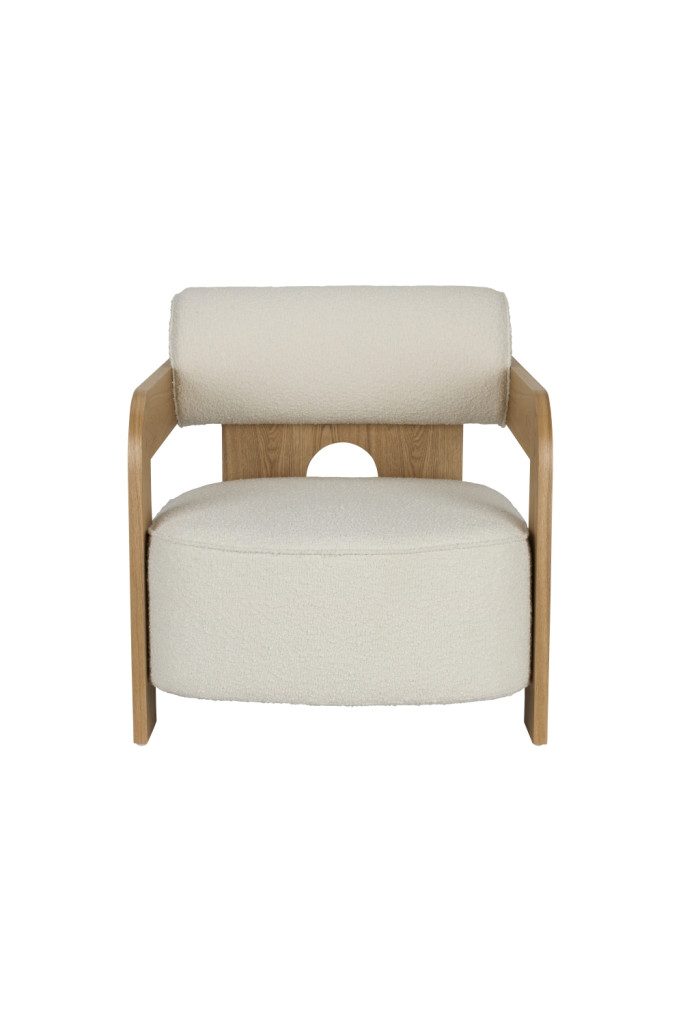 Az Oolong fotel nemcsak kényelmes, hanem figyelemfelkeltő dizájnelem is, amely az otthon bármely pontján a tekintetek középpontjába kerül. A puha bouclé kárpittal borított ülőfelület ideális pihenéshez, míg a lekerekített bükkfa lábak és az ívelt formák játékos, barátságos hatást keltenek.