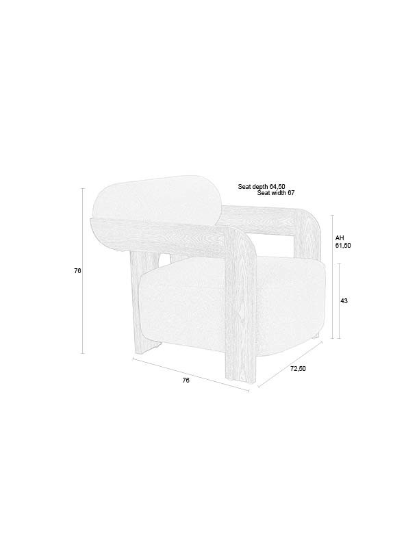 The Oolong armchair is both stylish and comfortable. Its soft bouclé upholstery and rounded maple legs emphasize the playful design. The rounded shapes and sophisticated details are an eye-catcher in any room.