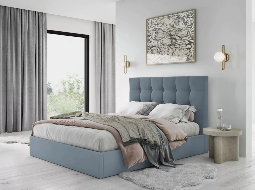 The Phaedra upholstered double bed offers modern elegance and practicality. The soft upholstery, padded headboard, and clean lines ensure a timeless look, while the gas lift, front-opening bedding compartment provides ample storage space in the bedroom. The mattress for the bed can be purchased separately!