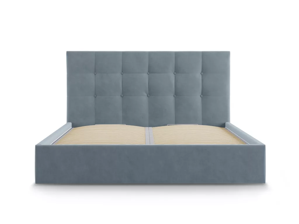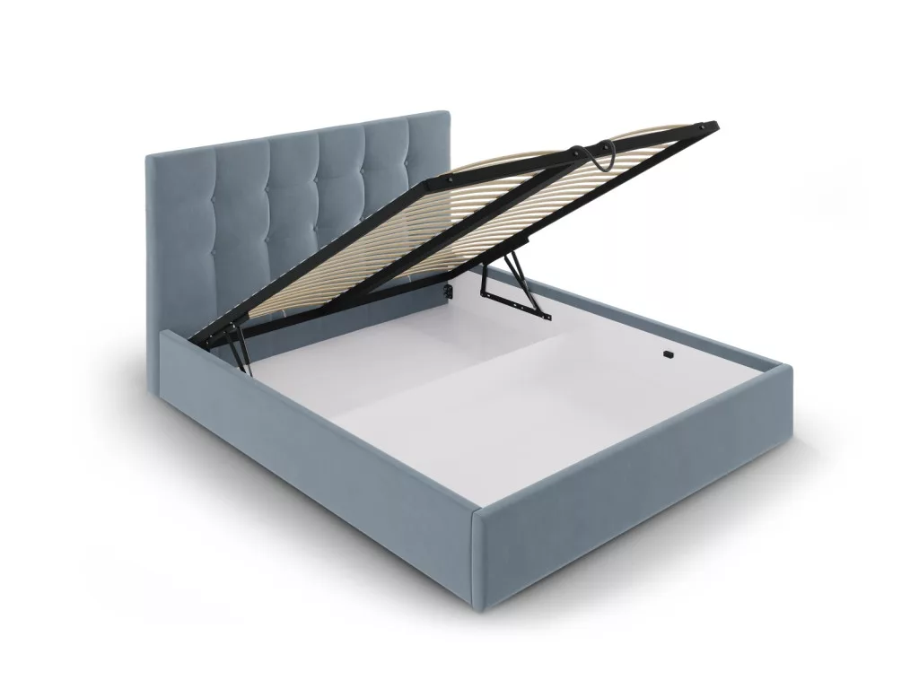 The Phaedra upholstered double bed is the perfect combination of luxury and functionality, instantly becoming the centerpiece of your bedroom. The rich yet soft upholstery, comfortably padded headboard, and modern legs provide an elegant, timeless look. The gas lift, front-opening bedding compartment provides extra space for organized storage of blankets, pillows, and other accessories, helping to create order and harmony in your home. The stable metal frame and flexible slats provide adequate support, guaranteeing comfortable sleep in the long term. The Phaedra bed is the ideal choice for those who want to enrich the atmosphere of their bedroom with modern, comfortable and practical furniture
