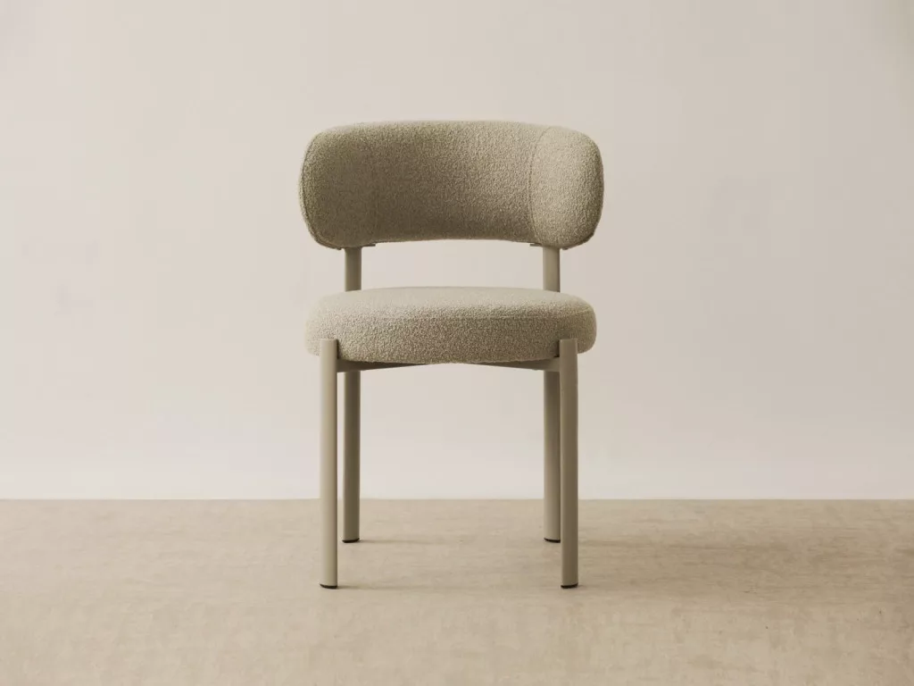 The Ponent dining chair brings a modern, cozy style to any dining room. Its soft bouclé upholstery and balanced foam density ensure long, comfortable meals and conversations, while its sturdy metal frame and plywood seat guarantee durability.