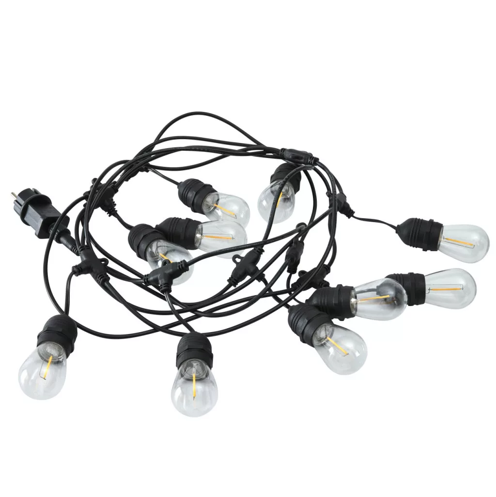 The Sylda LED string light provides ideal mood lighting in the garden, on the terrace or indoors. 500 cm long, with 10 energy-saving LED bulbs, a white plastic shade that evenly distributes the light. Two string lights can be connected, so you can easily control the lighting for both small and large spaces.