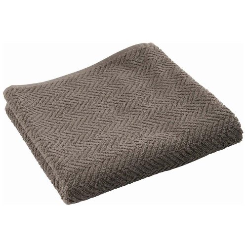 Taupe towel made of 100% organic cotton with an elegant herringbone weave. A functional yet decorative piece that will add style to your bathroom.