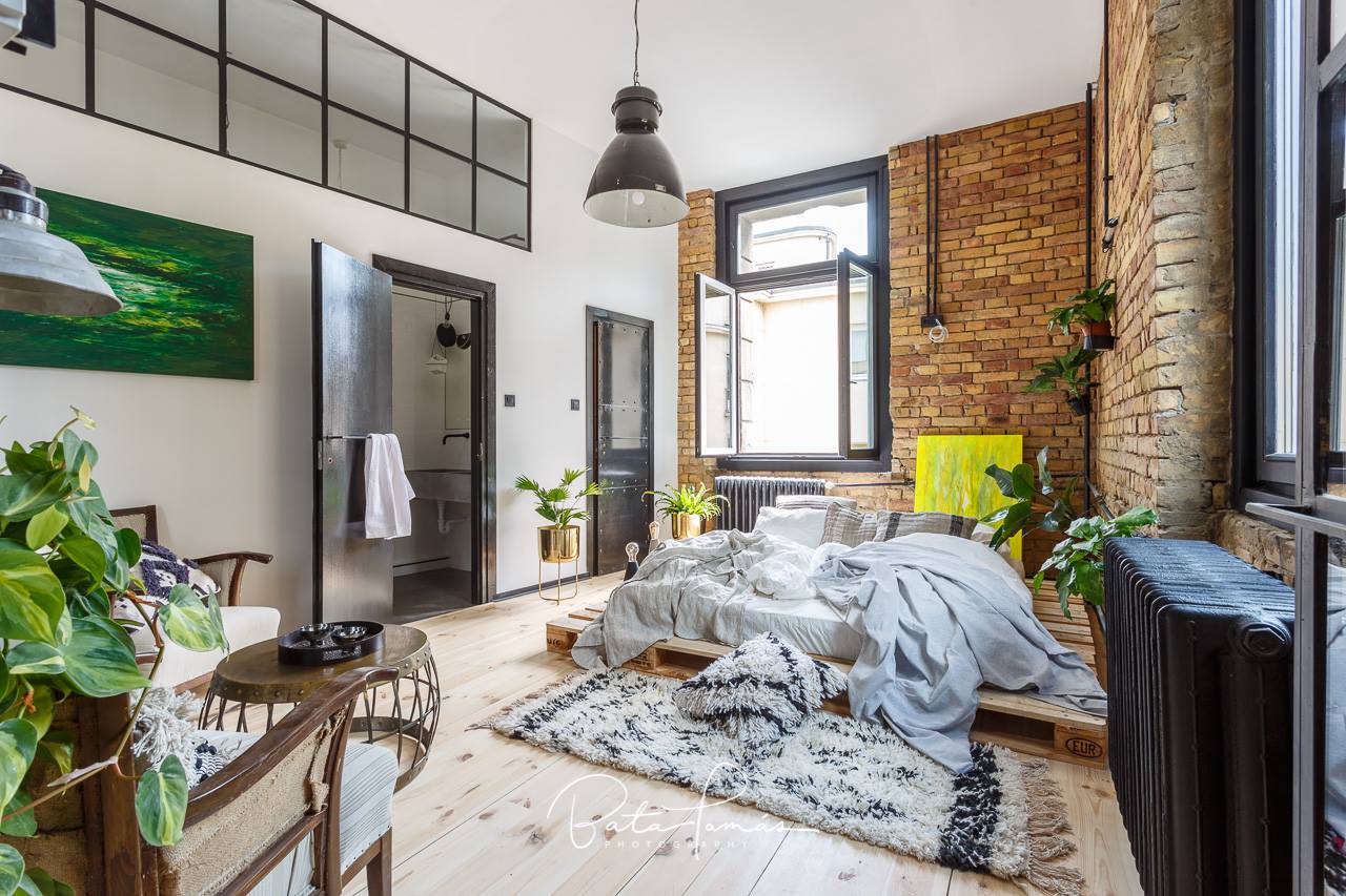 The freshness and relaxed spirit of the industrial loft-style apartments offer an appealing visual experience. The prominent visibility of the brick walls gives the apartment a unique feel, and the exposed wiring solutions further enhance the industrial character of the space.