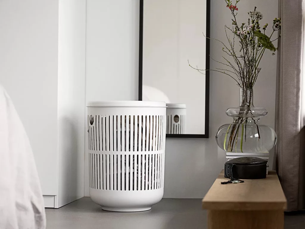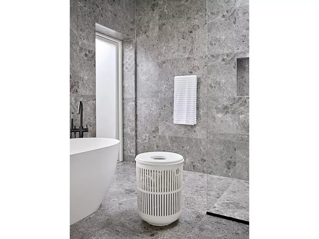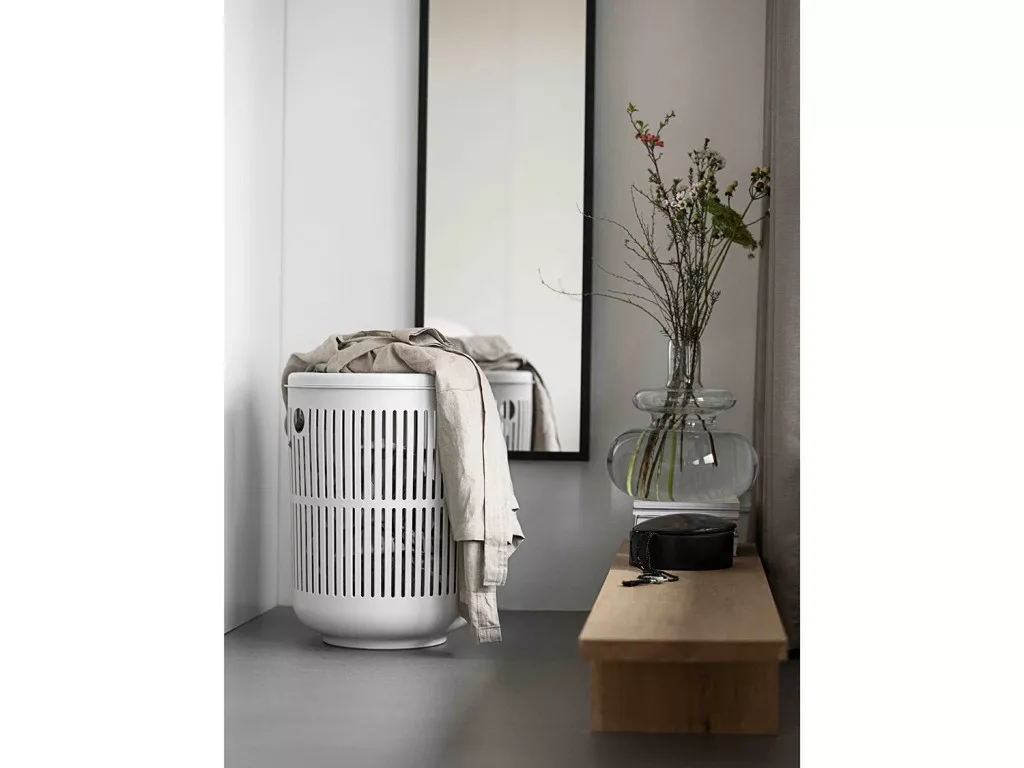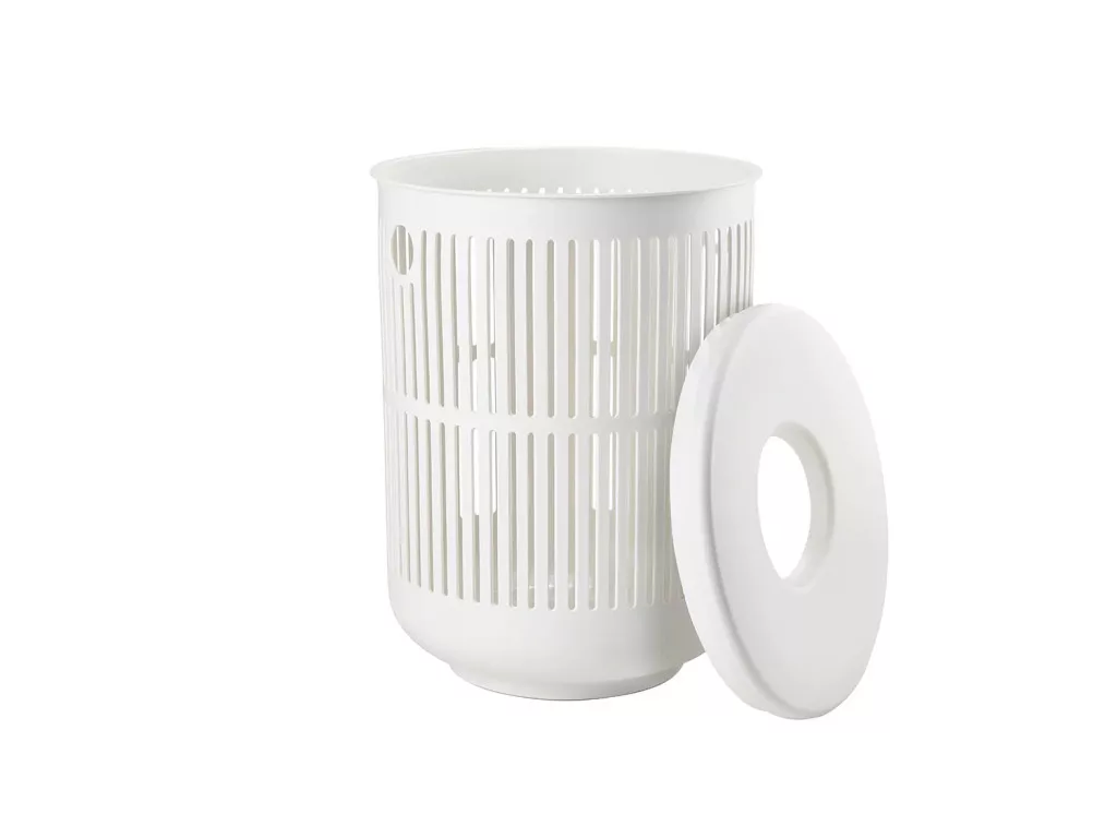 Ume szennyestartó fedéllel, kerek, fehér