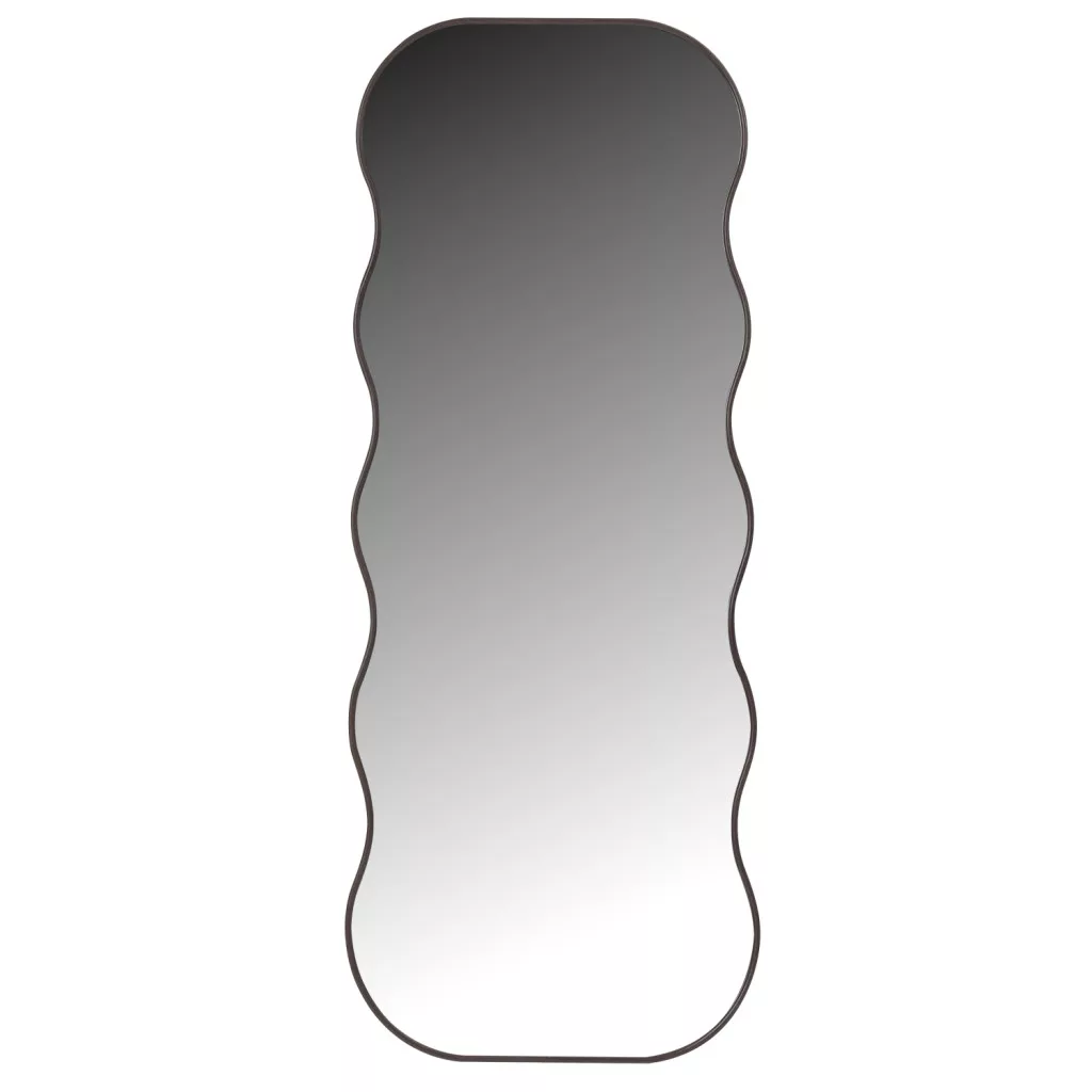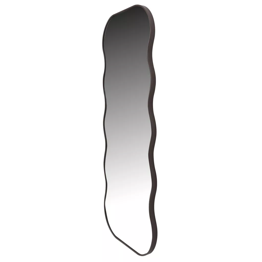 Isdal mirror with a dark wooden frame featuring a wavy design, adding character and an organic touch to any interior.