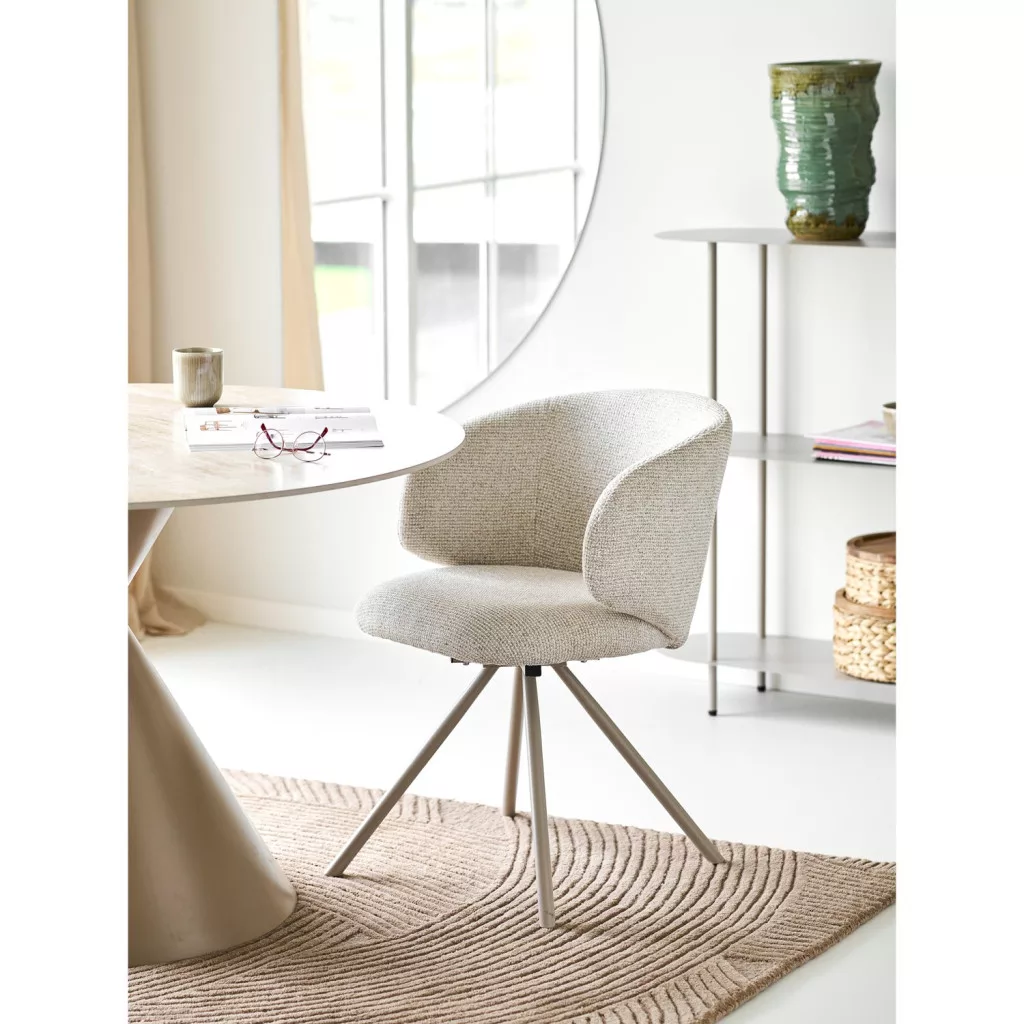 The Fulham swivel chair with armrests is a stylish and multifunctional piece of furniture that is ideal for your home office, work corner, or dining room. The 360° swivel design provides flexibility for everyday use, while the comfortable padded seat and armrests offer a pleasant seating experience for longer conversations or work. The neutral-toned upholstery fits easily into both modern and Scandinavian interiors, harmoniously combining design and functionality in a single piece of furniture.