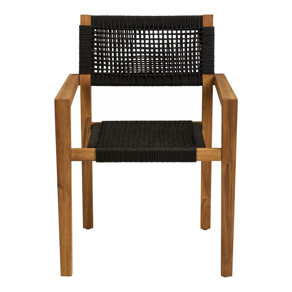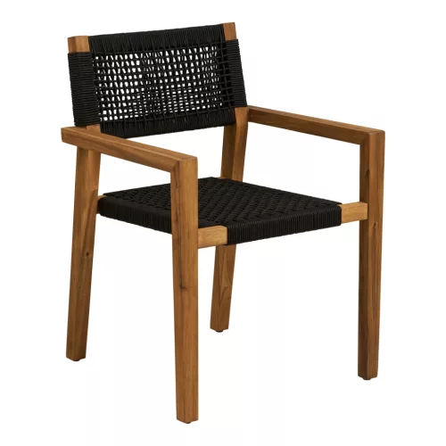 Due to its simple, yet characterful appearance, the Anzio garden chair can easily be integrated into various outdoor interiors: next to classic garden furniture, modern patio furniture sets or on its own. The black color provides an elegant base, to which you can also choose colorful cushions or decorations for an even more cozy outdoor space.
