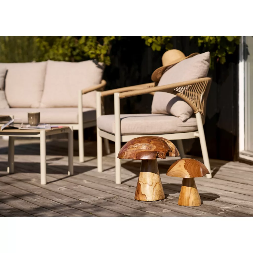 The Mushroom decoration made of teak wood gives your home a natural, warm atmosphere. Ideal for the living room, bedroom, or shelves, where it enhances the style of the space as a playful yet elegant accessory. The natural pattern of teak wood makes each piece unique.