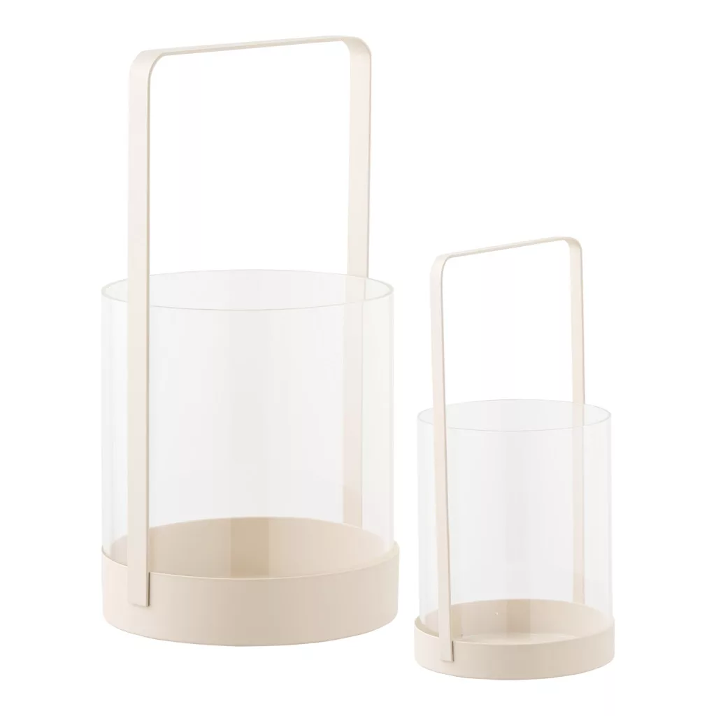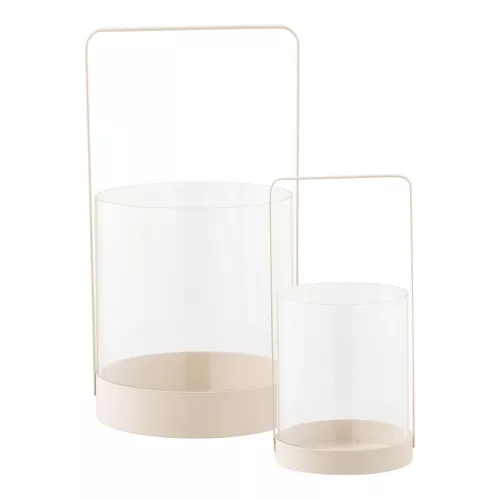 The Hurricane candle holder, set of 2, beige is a decorative and functional accessory consisting of two candle holders of different sizes. The combination of glass and metal creates a modern yet timeless look, making it easy to fit into different interior design styles, whether minimalist, Scandinavian or rustic.