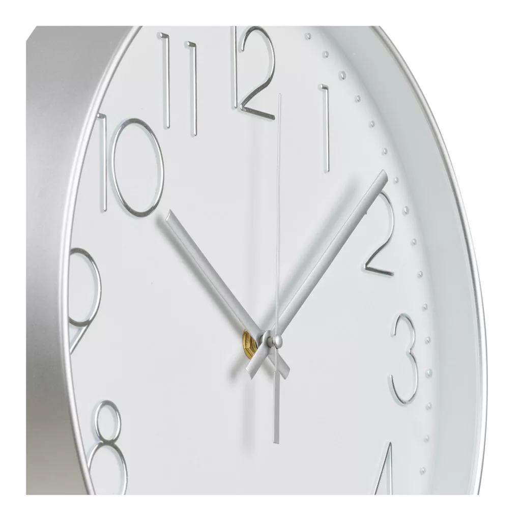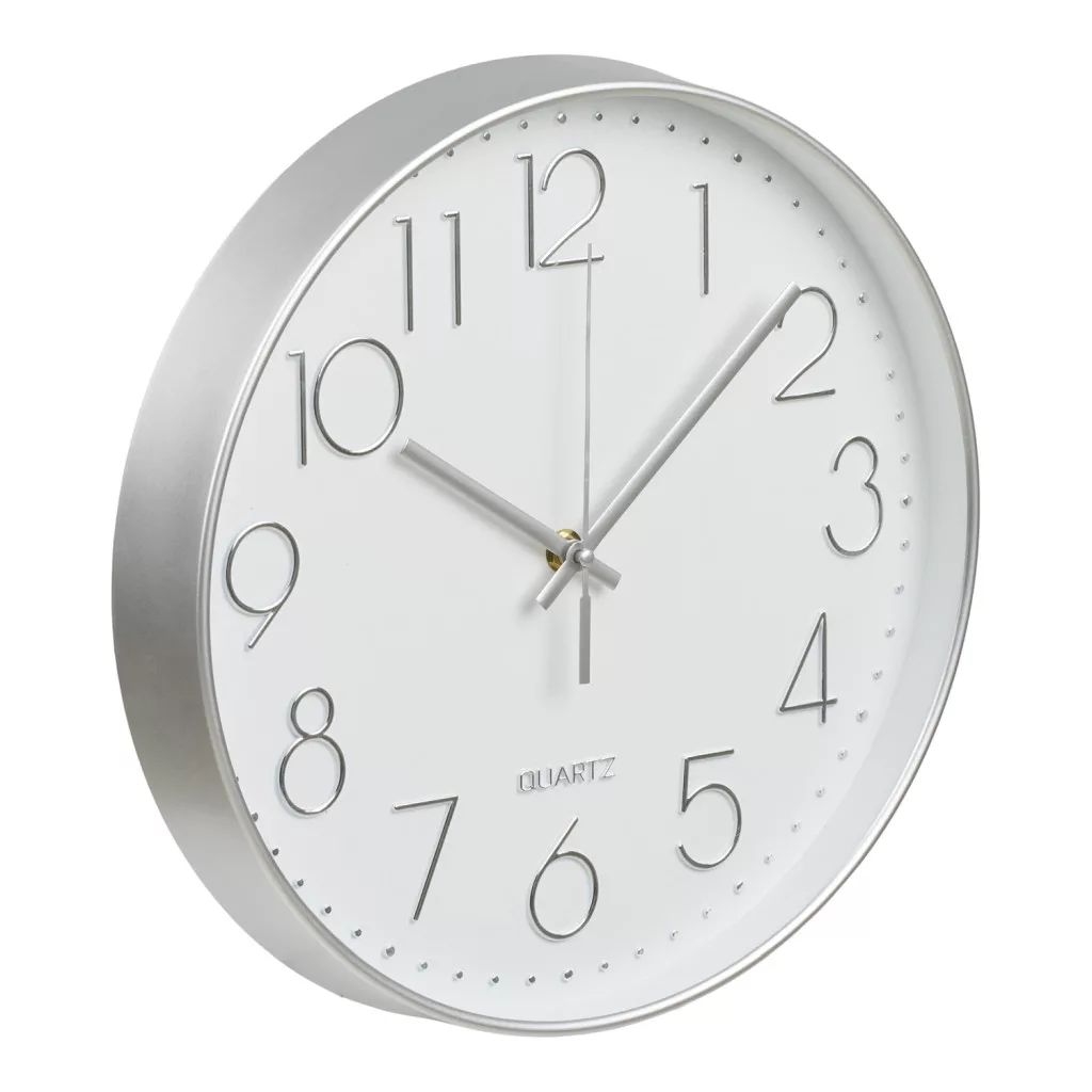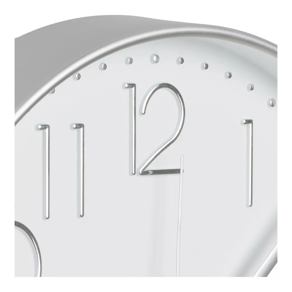 The Lalibela wall clock is an elegant, silver-colored wall clock with a clean Scandinavian design and a diameter of 30cm, which operates with a quiet, silent mechanism — an ideal choice for the living room, kitchen or hallway. The glass and plastic design provides a modern look, easy time reading and a decorative wall accessory for any room in your home.