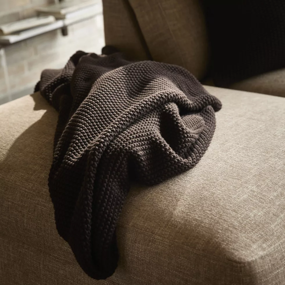 MOSS plaid – a stylish and comfortable accessory that instantly fills the atmosphere of your home with warmth and comfort. Imagine spending a pleasant evening on the sofa or in bed, wrapped in the MOSS plaid, enjoying peace and relaxation. Its soft, 100% cotton material ensures long-term durability and comfort, and the coffee brown shade adds a natural, harmonious atmosphere to any interior.