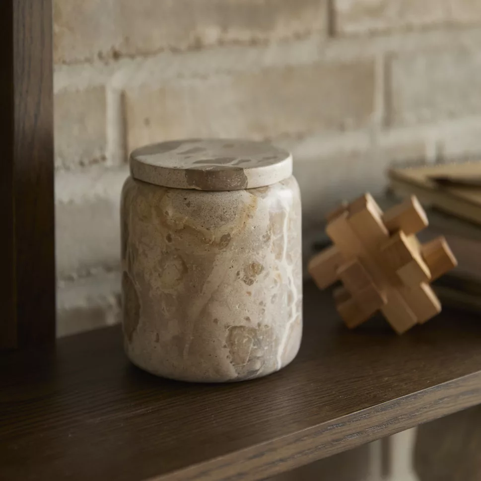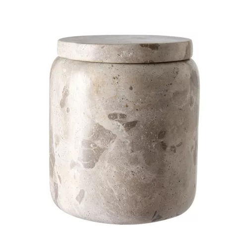 Ravnklint cotton pad holder with lid – a stylish and practical accessory that brings calm and elegance to your bathroom. The natural marble-effect surface harmoniously fits into any interior, while enhancing the atmosphere of everyday routines as a subtle, elegant detail.