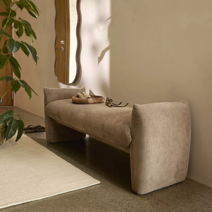 The sand-colored shade of the Marrius bench can be easily combined with other furniture and decor, so it naturally fits into any interior design style. It is easy to move, so you can flexibly place it wherever you want to relax. This bench is not only a place to sit, but also creates peaceful moments and a cozy atmosphere in your home.
