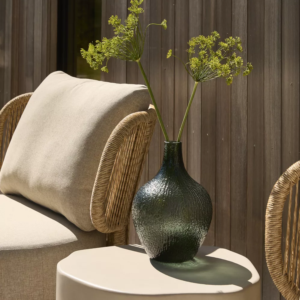 The Lyngvann vase can be easily combined with other objects, so it can easily fit into any style of room. The vase's detailed yet harmonious shape and color help to create balance in the space, combining function with aesthetics.