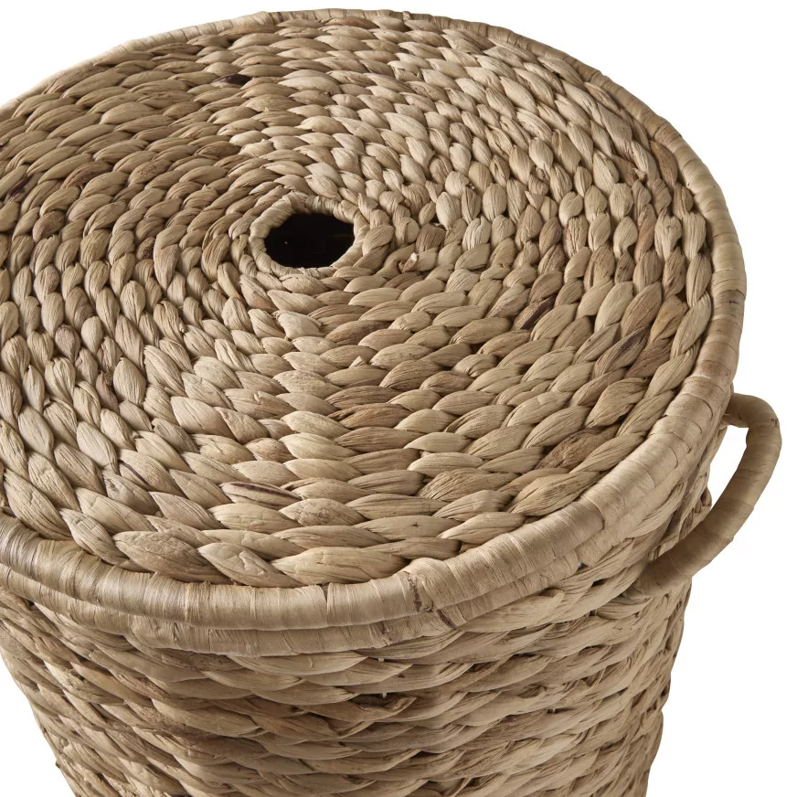 The Rynor ​​laundry basket is the perfect choice for creating everyday order and style. With its handmade details and natural material, it brings warmth and harmony to your home. Its practical design, water hyacinth material and easy-to-move handles make it an ideal choice for the bathroom or bedroom, while adding elegant details to the interior of the room.